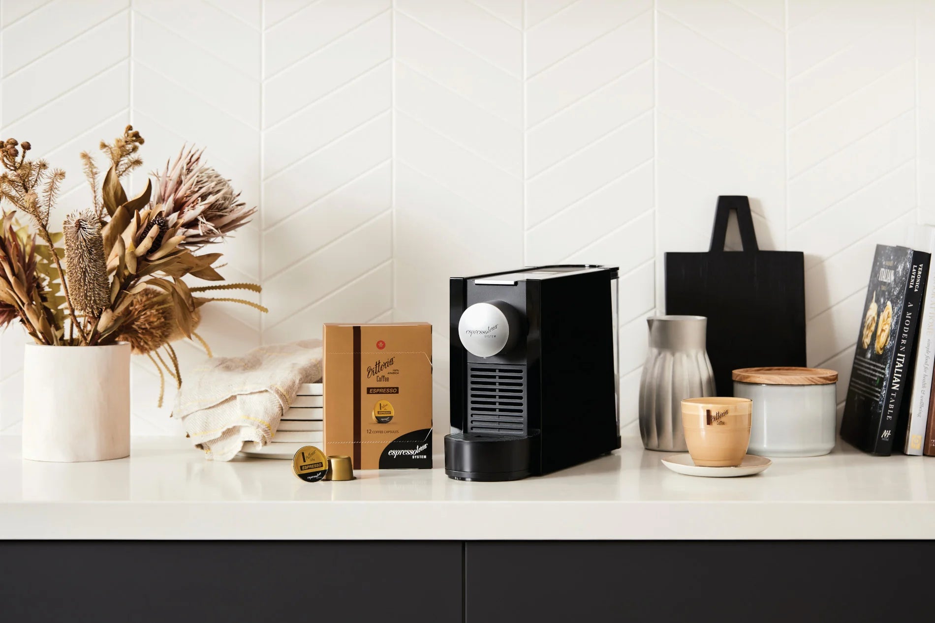 Purchase any 12 Vittoria Coffee® Espressotoria® compatible capsules and unlock an Espressotoria® Coffee machine.